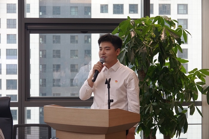 青年代表在北京通州區中倉街道黨工委慶祝中國共產黨成立104周年主題黨日活動上作主題宣講